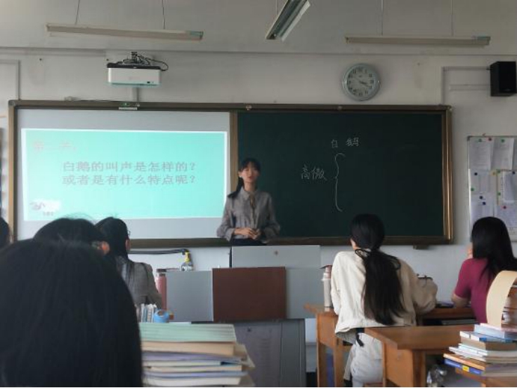 大赛分初赛和决赛两个阶段,初赛由各班级分别组织,共选拔出6名选手参加校级决赛。比赛严格按山东省师范生从业技能大赛的要求进行,学段为小学语文组,分固定题目授课、随机抽取题目授课、答辩和钢笔字考查四个环节。