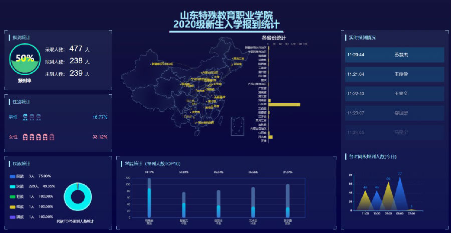 借力智慧校园基础平台,信息中心积极谋划,将智能化、大数据应用于本次迎新工作的各个环节,实现迎新工作的流程化、精细化、智能化,保障迎新业务的规范、准确、便捷、高效。下一步,信息中心将继续围绕教育部《教育信息化2.0行动计划》要求,着眼长远,将大数据、人工智能、云计算等新信息技术融入学院的各个应用及服务领域,实现更多的可视化应用建设,搭建更多贴合学院实际的智慧校园信息服务平台,让校园信息化建设和管理工作再上新台阶。(供稿 信息中心 孙亭)
