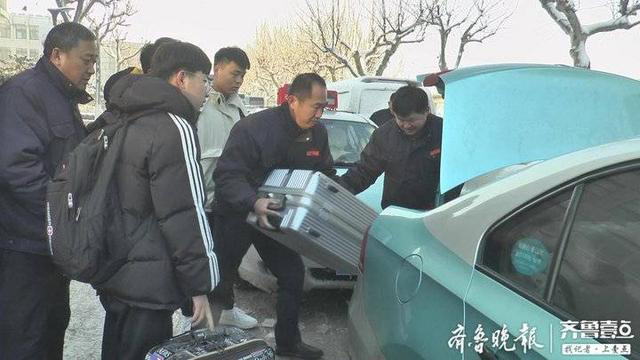 这是济南迎来2020年第一场大雪的第二天,天气严寒,路面积雪结冰难行。在学院学生工作处工作人员的精心组织和悉心帮助下,冒着严寒组织残障学生有序上车。共有百余名残障学生分批乘坐爱心出租车前往长途汽车总站、火车东站、西站等处,踏上回家的路。