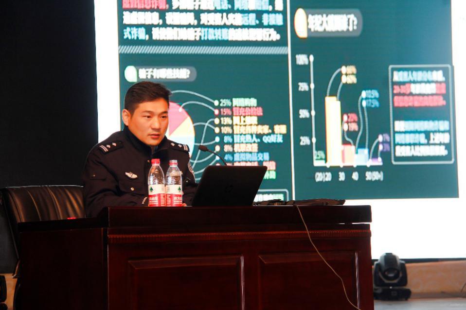 12月13日下午,kaiyun开云官方在线入口学生工作处邀请七贤派出所警官赵杰同志来院开展了安全知识教育讲座,副院长白文国出席,400余名师生参加。