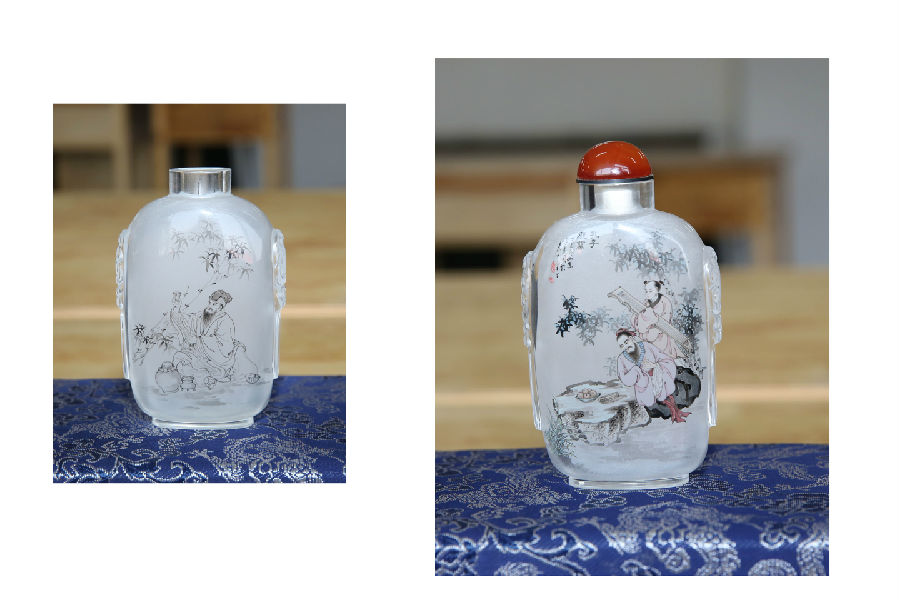 为了让学生们对内画有深刻的了解,李慧同老师向学生们展示了他的部分代表性作品。这些作品中有人物、山水、花鸟、走兽不同题材,作品清雅大气、婉转悠扬、栩栩如生,方寸之间,尽显意境之美。李慧同老师详细讲解了瓶内作画和纸上作画的区别,绘制内画的工具、颜料,现场展示了绘画技法。学生们听了李慧同老师的讲授,对内画创作充满了兴趣,大家跃跃欲试,纷纷拿起画笔体验内画创作的乐趣。