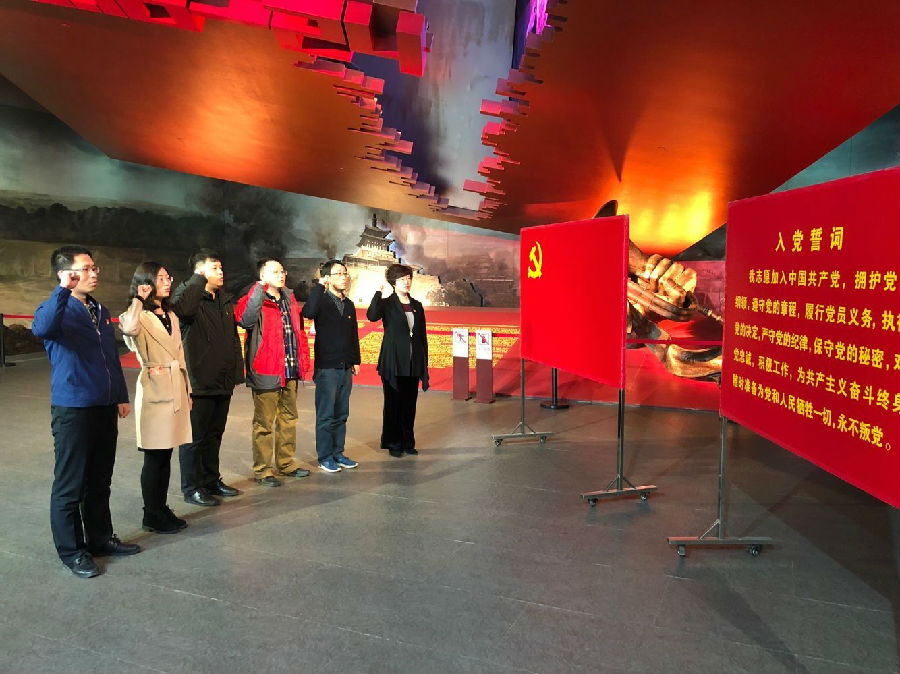 支部全体党员在纪念馆冲锋破城雕塑下重温入党誓词,铿锵恢宏的誓词,强烈震撼着在场的每一位党员,一字一句,神圣而豪迈,时刻提醒着自己所肩负的神圣使命和责任,不断强化对党的忠诚、对共产主义事业的不懈追求。