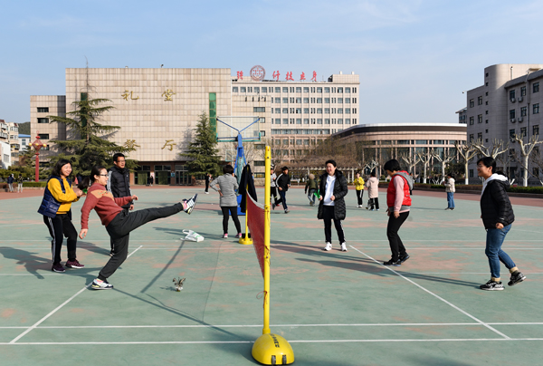 为庆祝三八妇女节,丰富部门女教职工业余文化生活,3月7日下午,基础部组织部门全体教师在学院操场举办庆“三八”毽球比赛。