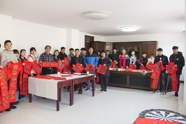 1月9日上午,学院退休干部胡伟东和在职教师李以英为学院22名建档立卡家庭经济困难学生书写春联,送上新春祝福。