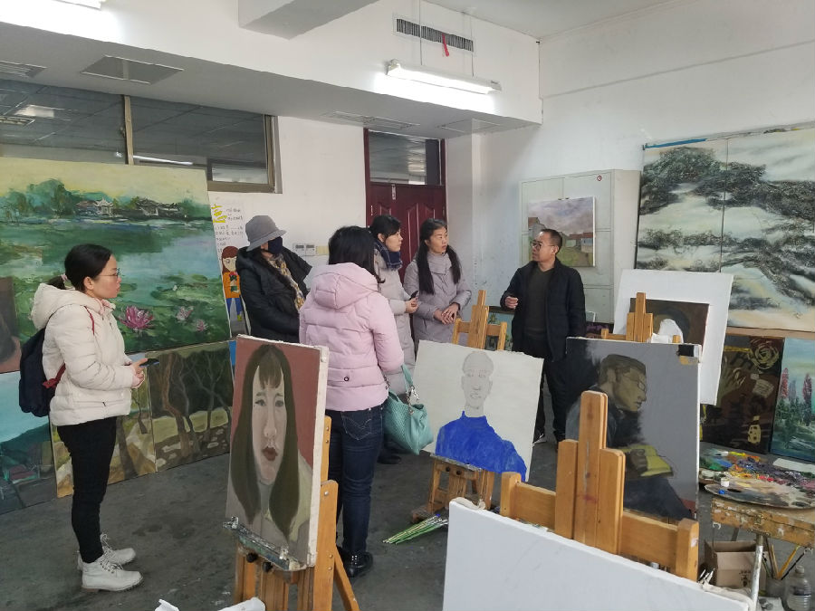 刘文江对德州职业技术学院计算机系主任刘文娟一行的到来表示欢迎,并引领参观了学院艺术设计系陶艺、玉石雕刻、木雕、油画等专业工作室,现场观看了学生陶艺拉胚和玉石雕刻,高度赞扬了学生精益求精的工匠精神。
