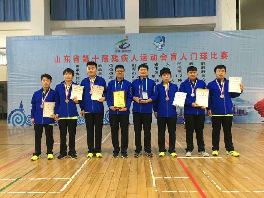 10月17日,学院盲人门球代表队参加山东省第十届残疾人运动会盲人门球项目,摘取盲人门球项目铜牌,实现学院自建校以来盲人门球项目零奖牌突破。