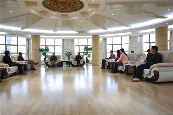 王雯校长向许宝生院长一行介绍了学院的专业建设、师资队伍、招生就业、办学成绩以及十三五规划等主要情况。许宝生院长及同行人员对学校建设发展取得的成绩给予了充分肯定,并对学院学生的综合培养能力表示高度赞赏。随后,双方相关人员就学院十三五规划建设、工美专业教育教学、手语翻译资格鉴定三个方面进行探讨交流。