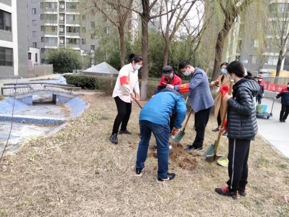 在植树现场,党员志愿者们热情高涨,与社区群众一同挖坑、搬苗、填土,大家分工明确、配合默契,每一个步骤都认认真真、一丝不苟,合力栽下了象征着美好寓意的树苗,让小区绿化焕然一新。