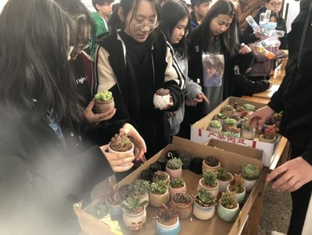 一个小时不到,多肉已被师生们兑换一空,活动结束后,志愿者们表示卖掉废弃纸箱、塑料瓶的收益将采购环保布袋,发放给需要的师生。同学们纷纷表示:这个活动真的非常好,能让废品再次被利用起来,既提高了我们的环保积极性,也让我们离绿色生活更近一步!