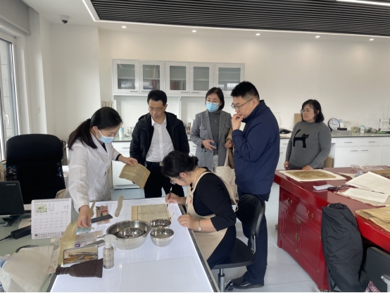 丁华一行首先参观了中心的壁画、陶瓷、金属、纸质和纺织品文物保护修复项目以及先进的文物保护修复实验室。