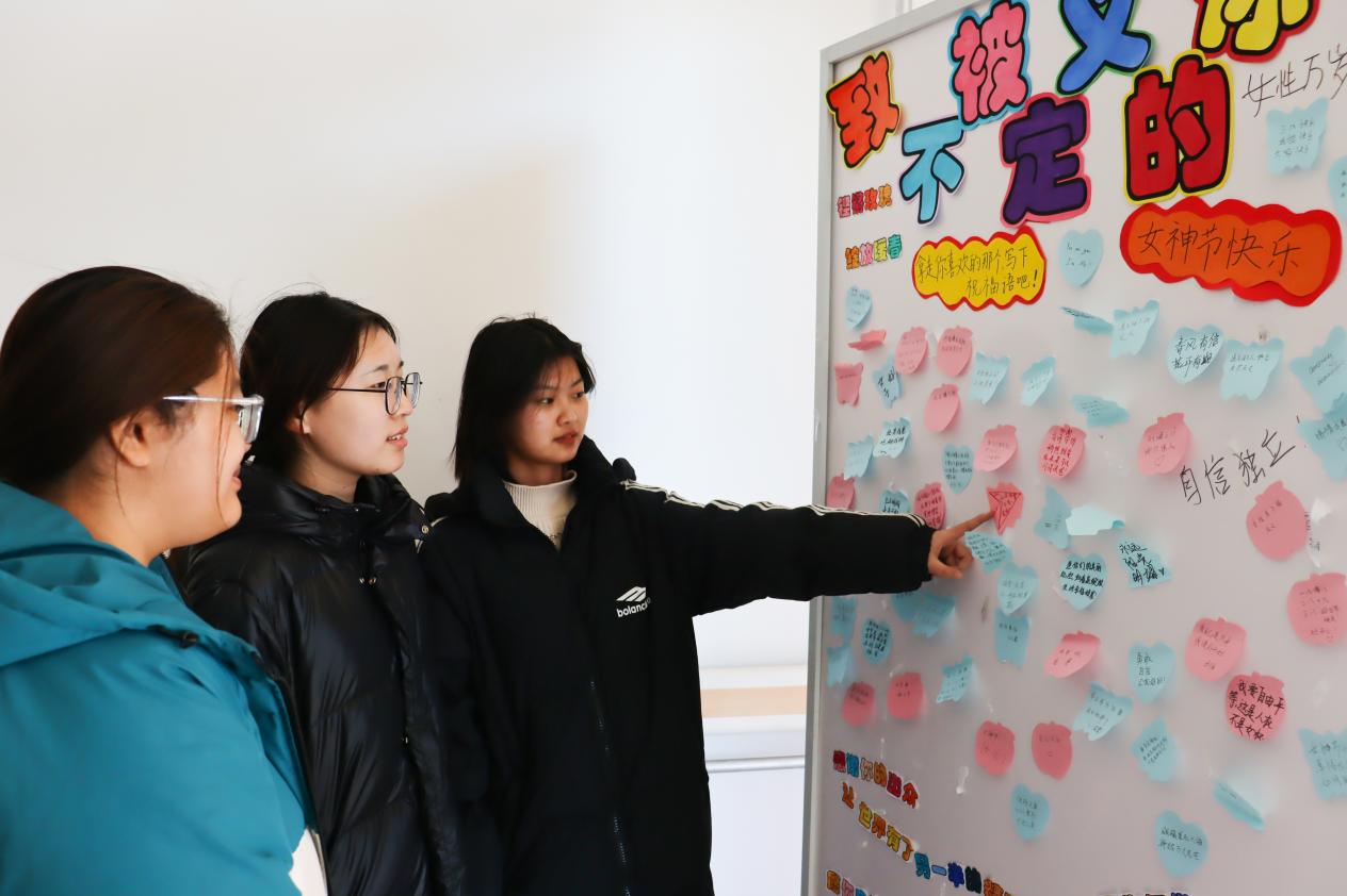为引导广大青年学子关注自身思想素质和心理健康,展现女性力量,营造和谐友爱、积极向上的校园文化氛围,3月8日上午,特殊教育系设置场地,为大家准备了心形便利贴,并精心准备了祝福糖果或是其它小礼物。路过的师生们在立牌上留下自己的心愿或是对未来美好的期望,“做一朵自由生长的花,勇敢而细腻,温柔且坚定”“像花儿一样绽放”。便利贴上面看似简单的几句话,可在这一刻,它们有了新的名字,它们叫做“希望”。希望所有女性摆脱标签束缚,更自信、更勇敢地展现出新时代女性独立自主的美丽,做闪闪发光的自己!