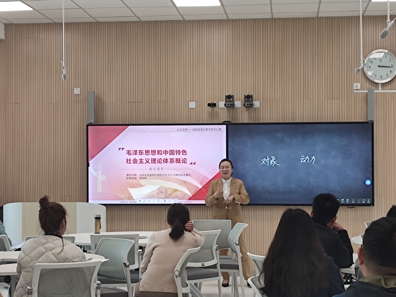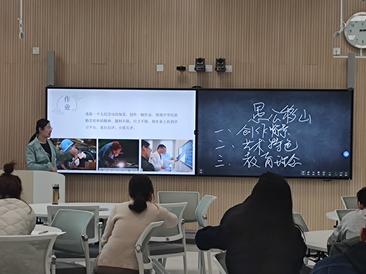 顾丽霞从“如何开展规范课堂教学”“教学能力比赛基本情况”“青年教师教学能力比赛基本情况”三个方面进行介绍,随后组织新入职教师观摩思政部教师李晓凤、艺术设计系教师郝玉超的参赛教学视频和现场教学展示。大家认真学习、相互交流,在互学互鉴中提升自身的专业素养和教育教学能力。
