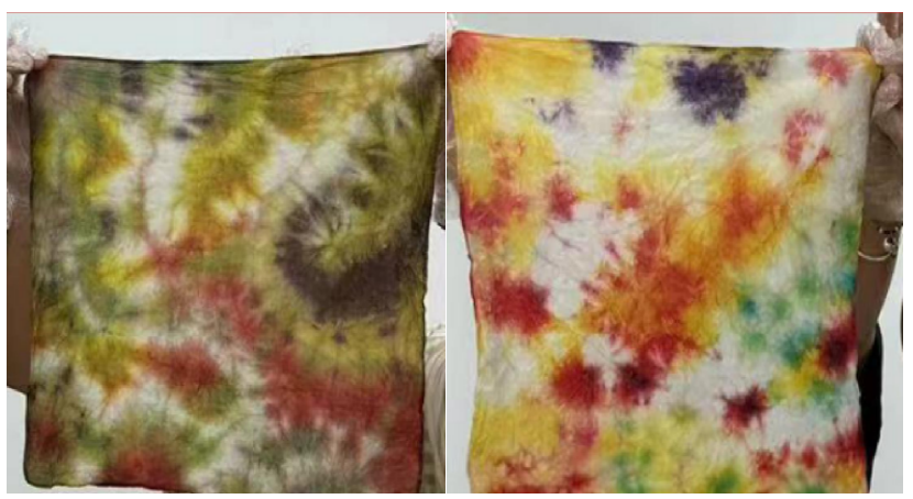 “妙想生花,感受‘布’同世界”。在体验扎染工艺时,同学们充分发挥想象力,将一块块布料扎缚起来,然后挑选出喜欢的各色染料进行染色。一扎一染间,绚烂色彩绽于布上。