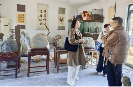 上午,考察人员来到山东省工艺美术大师王力的工作室,近距离欣赏了王力的玉石雕刻作品,深入了解了玉石雕刻的工艺流程、创作理念以及市场发展趋势。随后来到玉石加工厂和加工车间,参观学习了现代化的加工设备、精湛的雕刻技艺以及严格的质量控制体系。