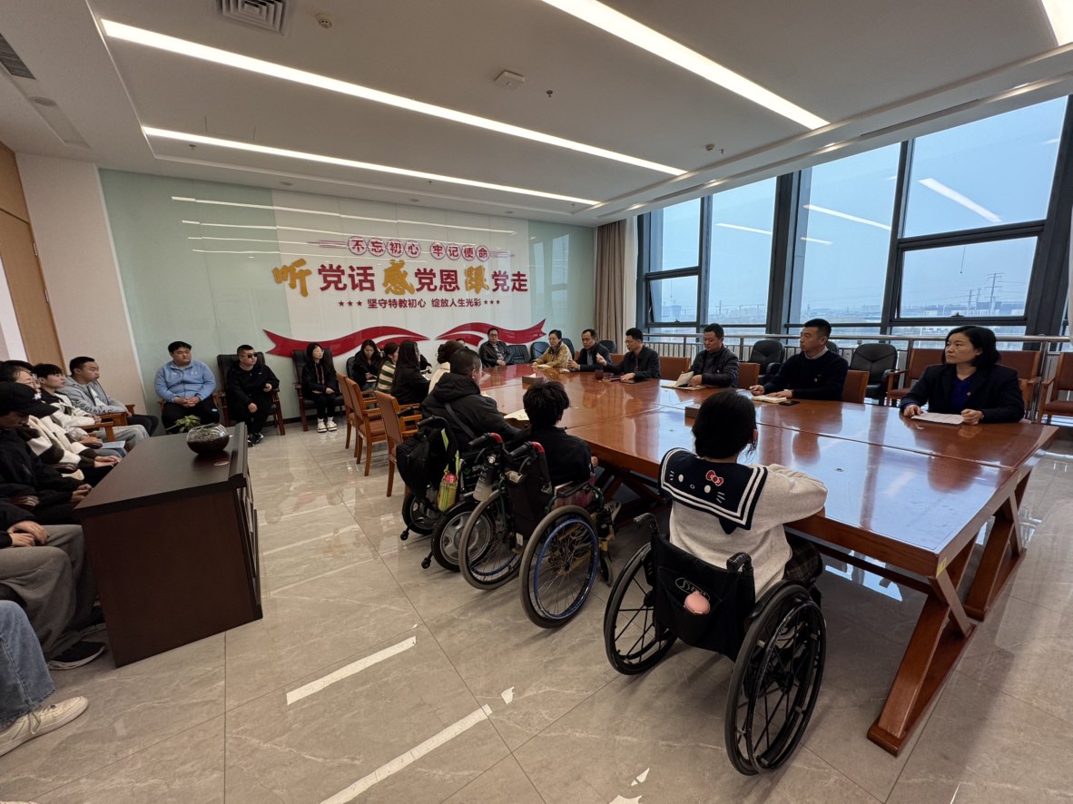 活动伊始,支部书记袁斐同志阐释了活动背景与意义,强调这是深化党员服务意识、落实"三全育人"的重要举措。全体党员创新采用“健听+听障”双轨调研模式,确保服务无死角、意见全收集。健听组由副院长丁华同志牵头,遴选涵盖各年级、专业的30余名学生代表开展座谈;听障组则由支部书记袁斐同志担任手语翻译,保障特殊学生群体的参与权。