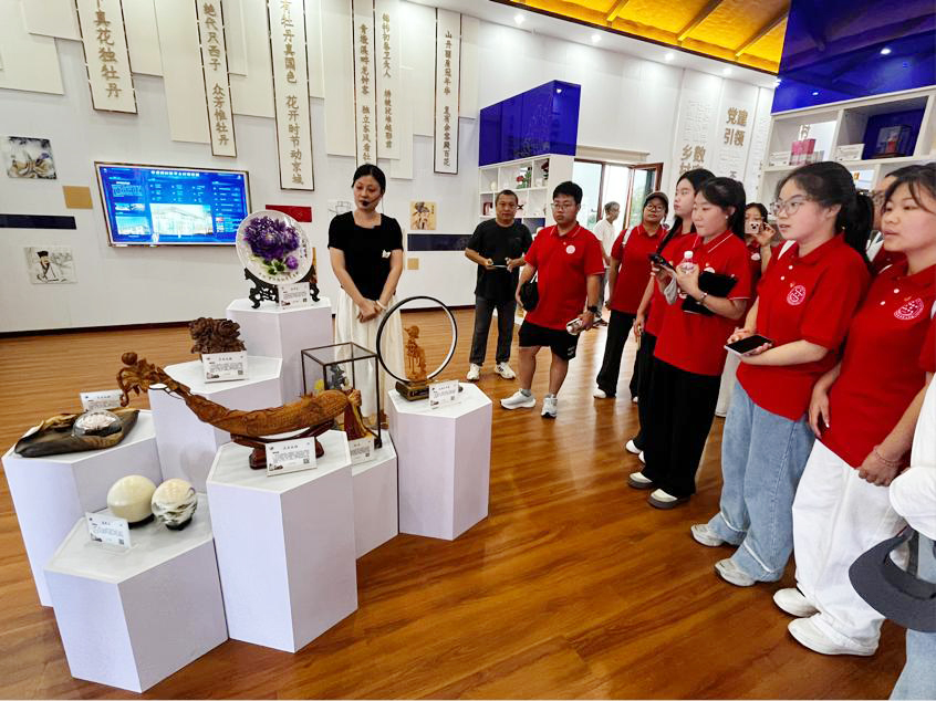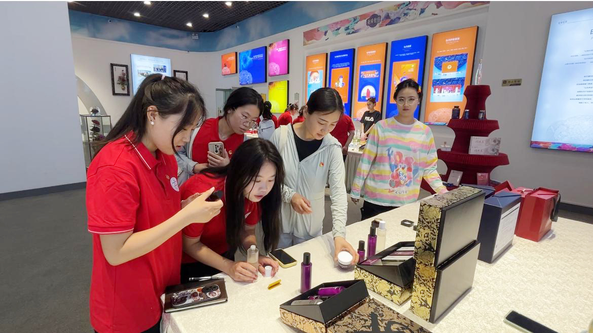 在尧舜产业园,实践队员们沿着习近平总书记的考察足迹,认真学习园区如何利用牡丹文章走出全产业链发展之路。文化展厅里牡丹籽油面膜、牡丹黄酮保健品等200 余种衍生产品让大家目不暇接,一片小小的牡丹花瓣从观赏到食用再到药用的蜕变更是让队员们看到了特色产业的无限可能。
