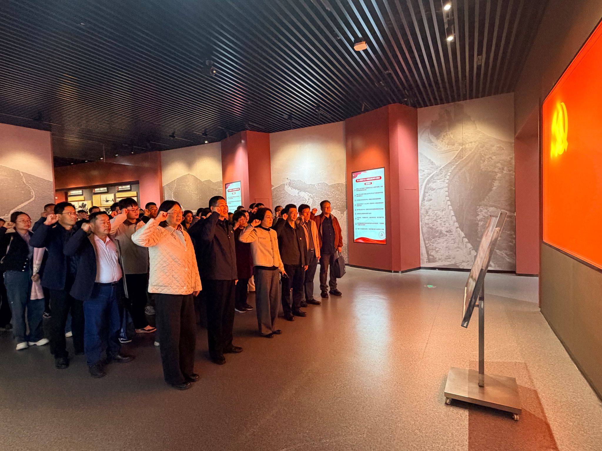 实践活动中,全体党员怀着崇敬的心情,跟随讲解员的步伐,仔细参观了陈列馆内珍贵的历史图片、文物实物和文献资料。一段段详实的文字记载、一幅幅泛黄的历史照片、一件件承载着记忆的革命文物,生动再现了山东党组织创建、发展的艰辛历程以及革命先辈们不畏牺牲、英勇奋斗的感人事迹。在陈列馆内,面对鲜艳的中国共产党党旗,全体党员举起右拳,重温了入党誓词:“我志愿加入中国共产党,拥护党的纲领,遵守党的章程……”铿锵有力的宣誓声响彻陈列馆,表达了同志们对党的无限忠诚和为共产主义事业奋斗终身的坚定决心。这一刻,初心再次受到洗礼,信念更加笃定,使命感和责任感油然而生。