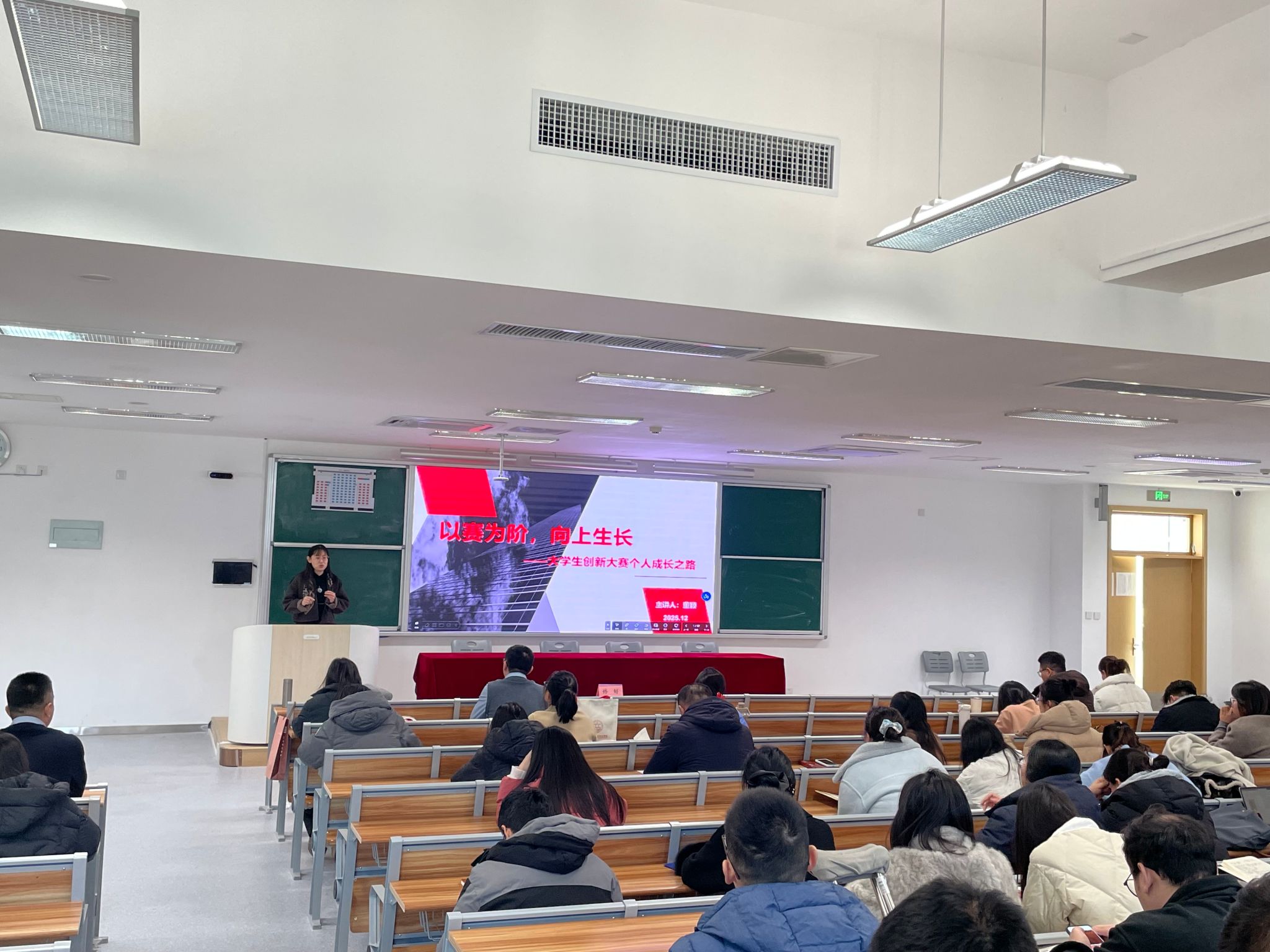 本次培训邀请张祥钦和董颖两位专家,采用“阶梯式”课程设计,精准对接教师实际需求开展培训指导。董老师以“以赛为阶、向上生长”为题,以亲身参与和指导大赛的经历为蓝本,为老师们分享了如何在指导赛事的过程中,实现个人教学能力、专业视野的同步提升,生动诠释了“创赛赋能成长”的深刻内涵,进一步调动了老师们参与创新创业大赛的积极性。