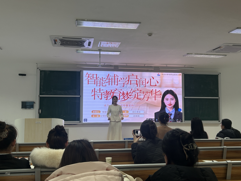 决赛现场气氛热烈,节奏紧凑,分为主题陈述与现场答辩两部分。选手们立足特殊教育、银发康养、服装家纺等专业领域,紧密结合社会需求,清晰阐述职业目标。他们通过详实的PPT展示、流畅的逻辑陈述与沉稳的临场应答,不仅展现了扎实的专业素养,更体现了特教学子将个人成长融入国家发展需要的社会担当与家国情怀。