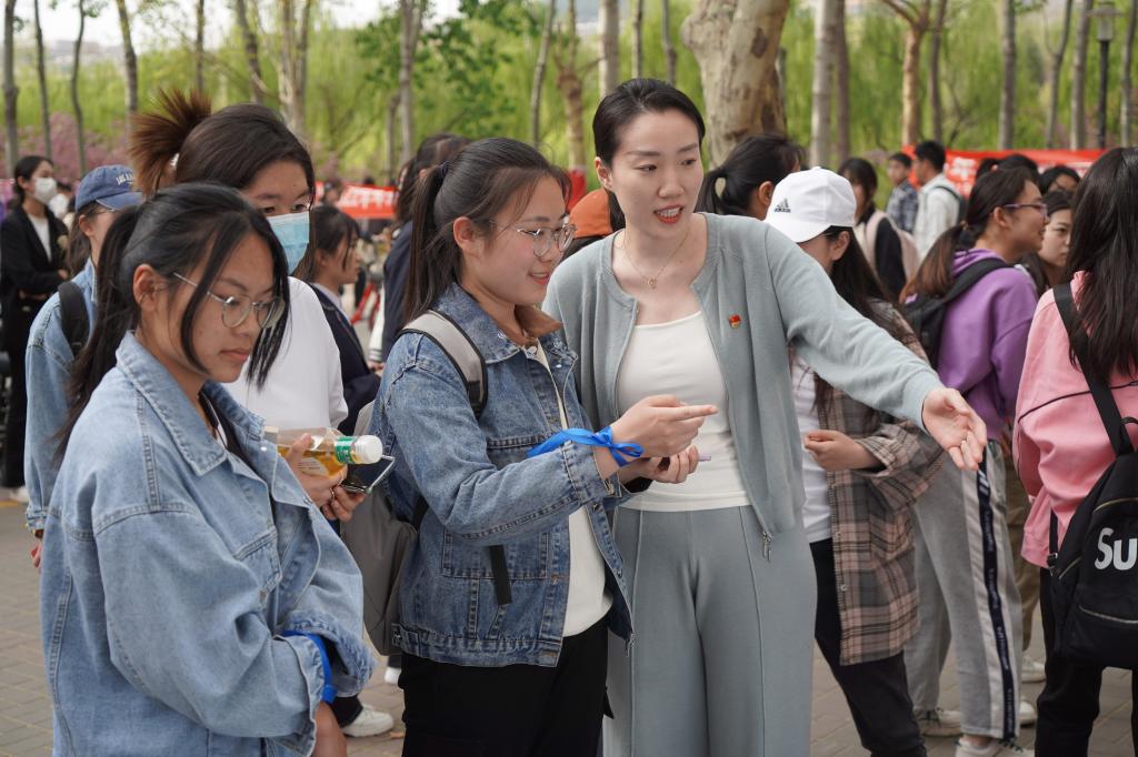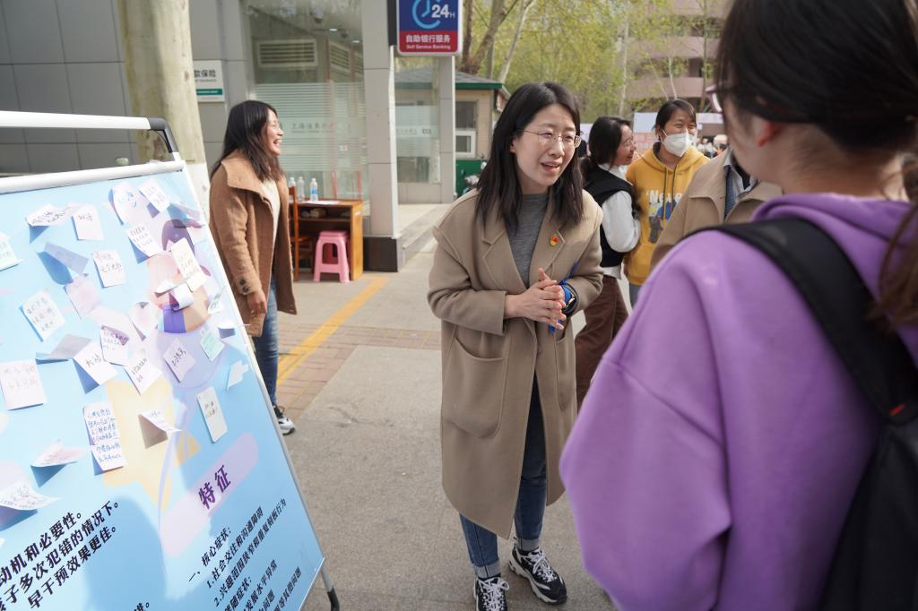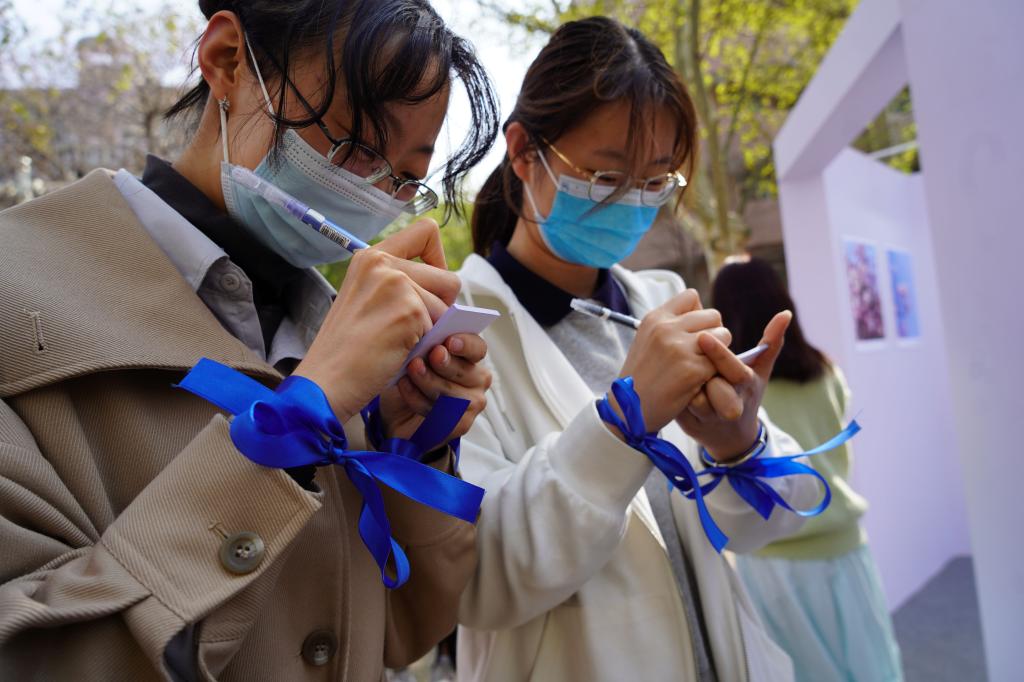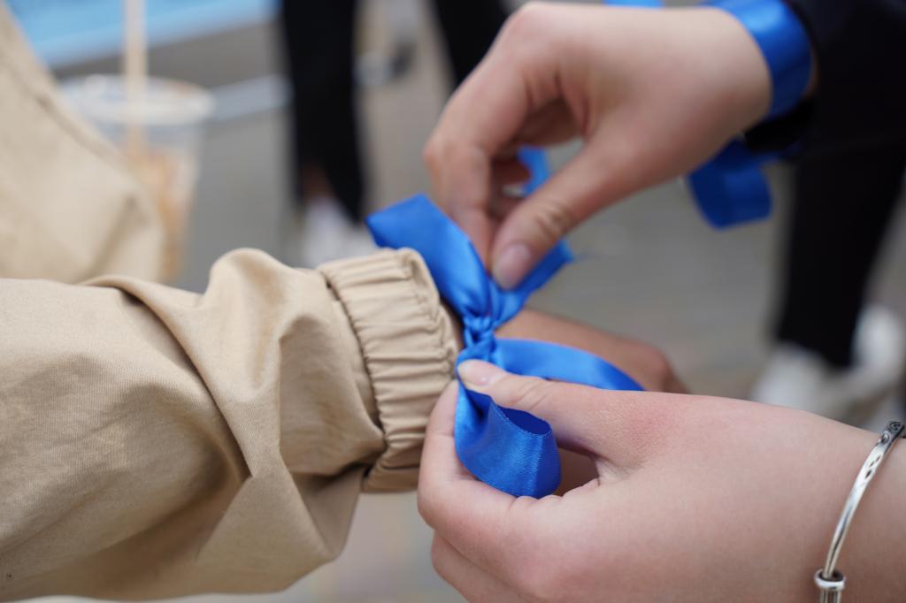 活动现场,支部党员带领系部学生为大家分发自闭症知识宣传手册,系上代表着鼓励、关怀与爱的蓝丝带,带领大家了解自闭症的具体情况,关注并包容他们、接纳他们,消除歧视与偏见,共同为自闭症患者营造一个安全舒适的生活环境。
