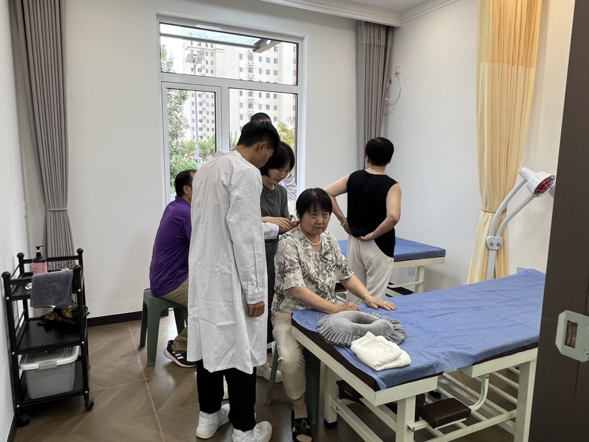 活动现场,志愿队热情接待了每一位到访居民,以一对一的方式,仔细询问了他们的身体状况和生活习惯,了解居民的既往病史,耐心地为他们分析病情,提供有针对性的健康建议,并通过精准的辨证对颈、肩、腰、腿劳损的居民进行推拿治疗。熟练的手法和精准的穴位按摩,获得群众的一致好评。治疗结束以后,居民纷纷表示“颈椎舒服多了”、“这样的义诊太好了”,拉着志愿队的手,期待他们再次到来。