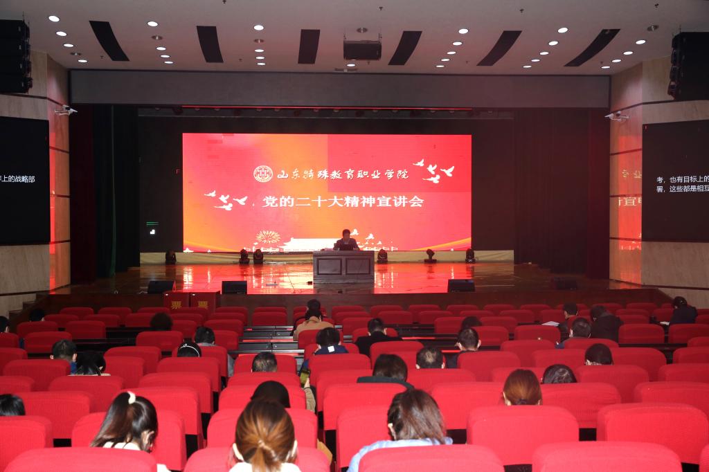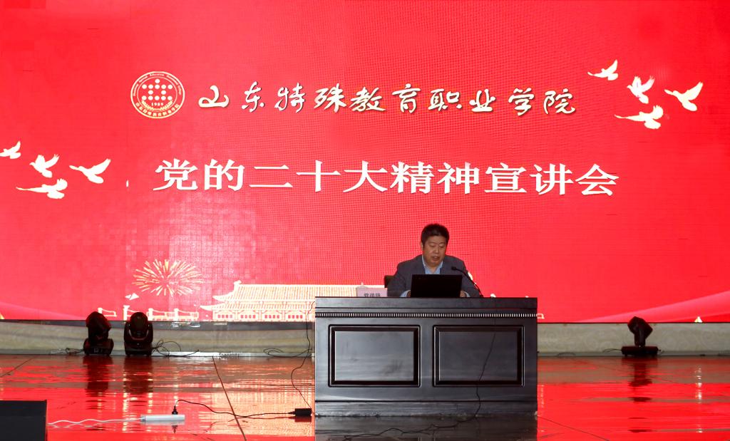 会上,管洪锋围绕深刻领会大会的主题和主要成果、深刻认识党的二十大的重大意义,深刻领会过去五年的工作和新时代十年的伟大变革、深刻领悟“两个确立”的决定性意义,深刻领会开辟马克思主义中国化时代化新境界、学深悟透党的创新理论的思想精髓,深刻领会中国式现代化的中国特色和本质要求、坚定不移走自己的路,深刻领会全面建设社会主义现代化国家的目标任务、更好把握战略布局和战略举措,深刻领会坚持党的全面领导和全面从严治党的重大部署、不断锤炼勇于自我革命的鲜明品格,深刻领会应对风险挑战的重大论断、依靠顽强斗争打开事业发展新天地等七个方面,对党的二十大精神作了深入阐释。随后,结合学院特殊教育事业发展以及职业教育、高等教育和特殊教育领域新出台政策文件,对党的二十大报告中关于教育、特殊教育的新提法、新要求做了系统解读。