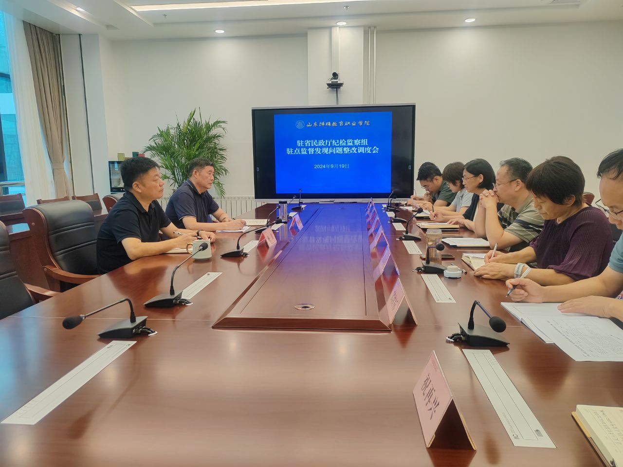 9月19上午,学院在图书馆506会议室召开驻省民政厅纪检监察组驻点监督发现问题整改工作调度会,党委书记杨磊出席会议并讲话,党委委员、纪委书记陈旭主持。