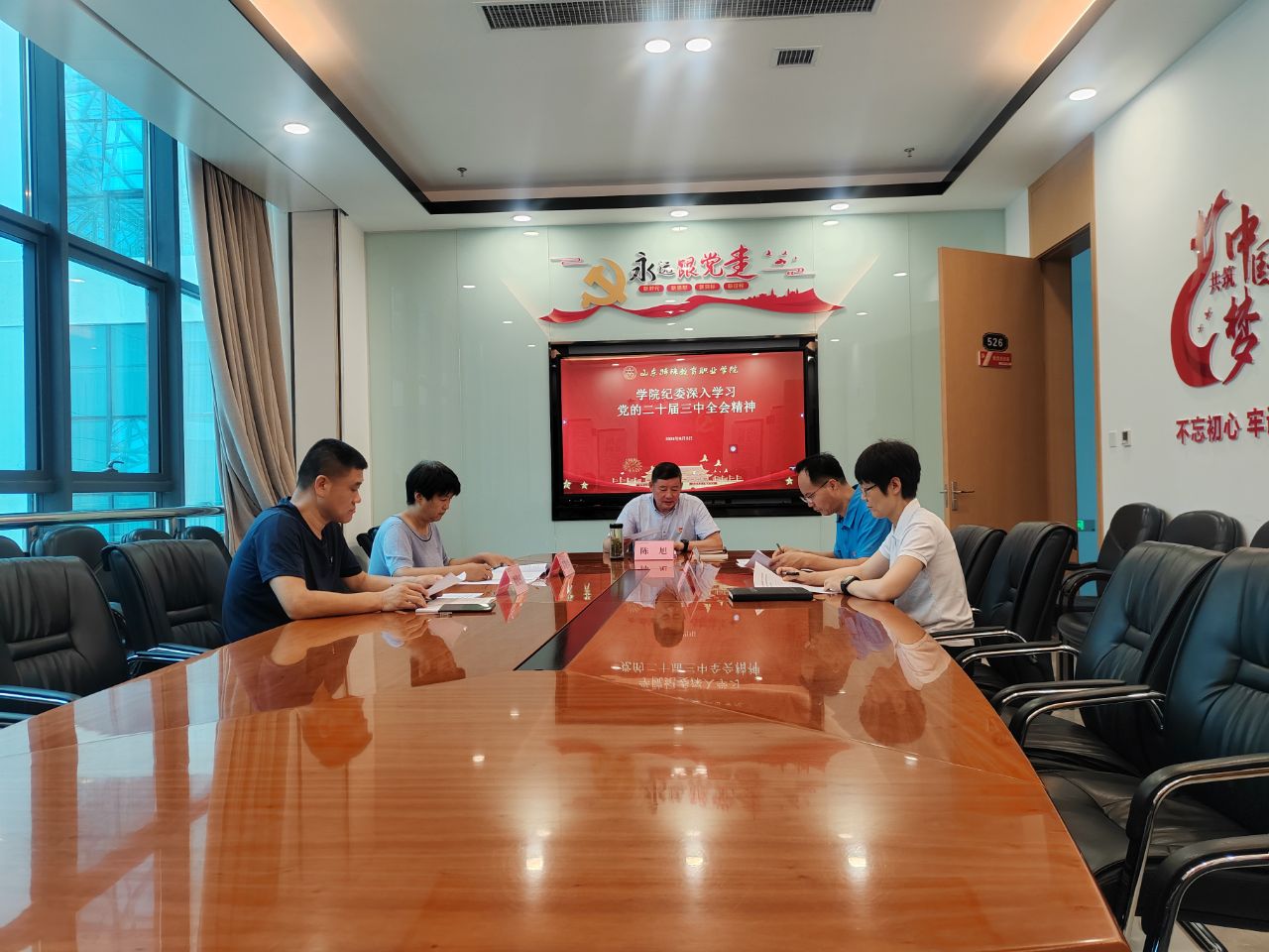 8月5日上午,学院纪委召开会议,深入学习党的二十届三中全会精神,研究部署下一步工作,学院党委委员、纪委书记陈旭主持会议并讲话,学院纪委委员、专职纪检干部参加学习。