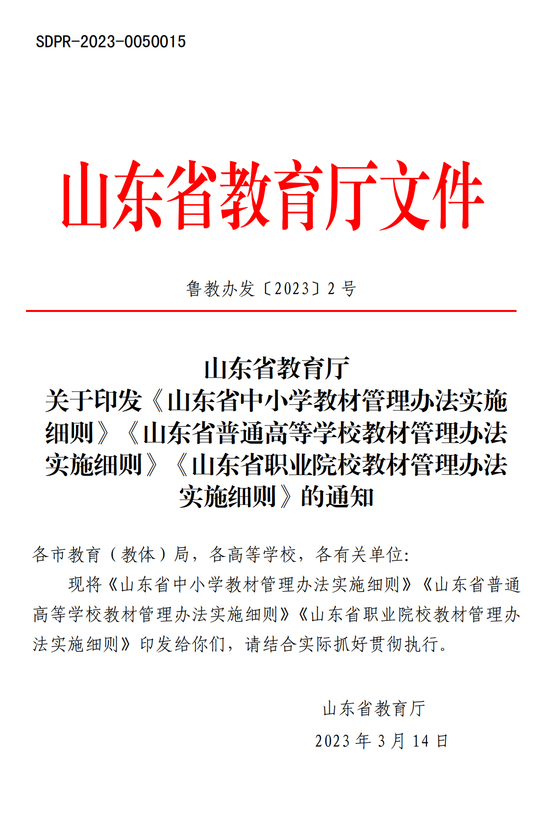 关于印发《山东省中小学教材管理办法实施细则》《山东省普通高等学校教材管理办法实施细则》《山东省职业院校教材管理办法实施细则》的通知.pdf