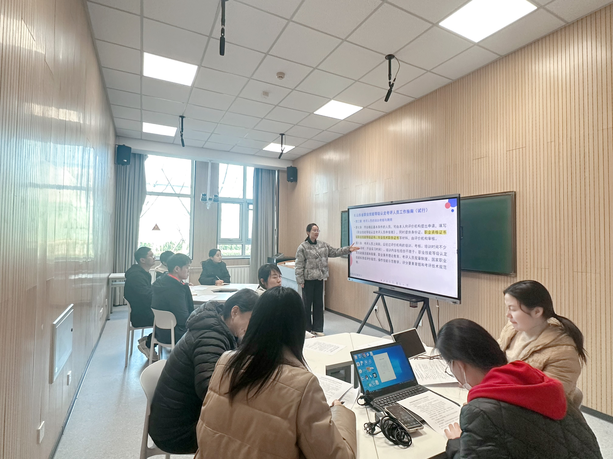 理论专题由继续教育部教师进行讲授,重点解读了《职业技能等级认定规程(试行)》、《技能人才评价违纪违规处理工作指引(试行)》等相关政策文件,紧扣职业技能等级认定核心要求,聚焦考评工作全流程,细致梳理了考评工作的核心准则、纪律要求与关键节点,明确了考评过程中的各类注意事项,结合实际考评案例,深入浅出地剖析了常见问题与规避要点,引导考评人员严守考评纪律、规范执评行为。理论培训结束后统一进行考评员考核,参训人员认真作答,全面检验理论知识学习成效,切实做到学深悟透、学以致用。