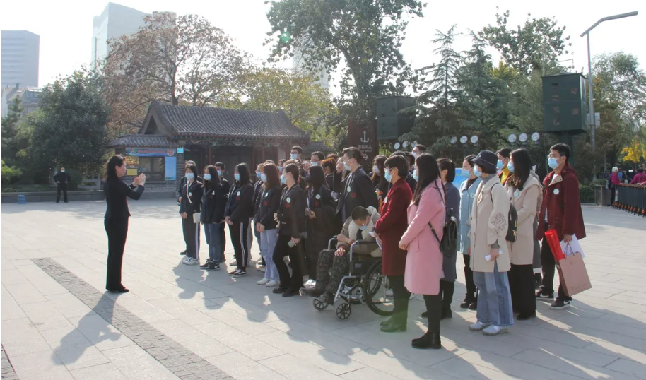 近日,我部“行走的课堂”思政实践教学—“我与家乡共成长”教学活动走出校园,走进泉城,分别在解放阁、宽厚里、百花洲进行现场实践教学。思政部主任张睿、学生工作处处长黄艳华等教师带队学院听障、视障、肢体障碍等学生50余人参加。