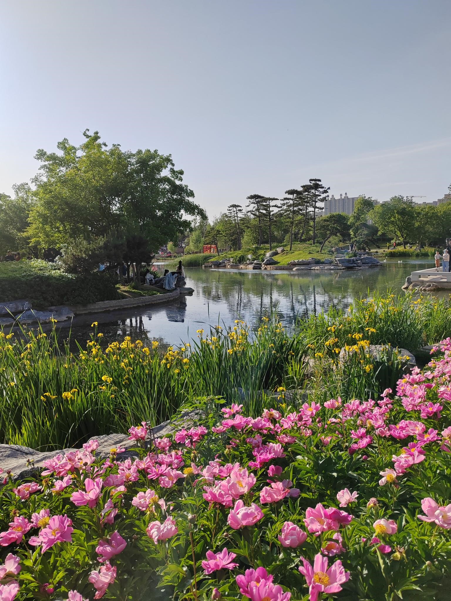 前方是漫山遍野的鲜花,而远处的人们就着风景野餐,有山有水又风景如画,没有什么比春天的野餐更让人心动。踏着春日的好风光,阳光正好、风过林梢,人们携手家人朋友,共同赏了这美丽的春色,令人艳羡!