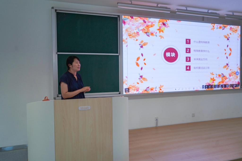 6日下午,特殊教育专业教研室主任梁斐、言语听觉康复技术专业教研室主任郝静静分别从各专业的培养目标、课程设置、实践要求、就业方向、所要具备的就业能力等方面,为同学们进行了详细的讲解,以帮助大家明确学习的方向,强化专业认同感,激发专业学习兴趣与热情。