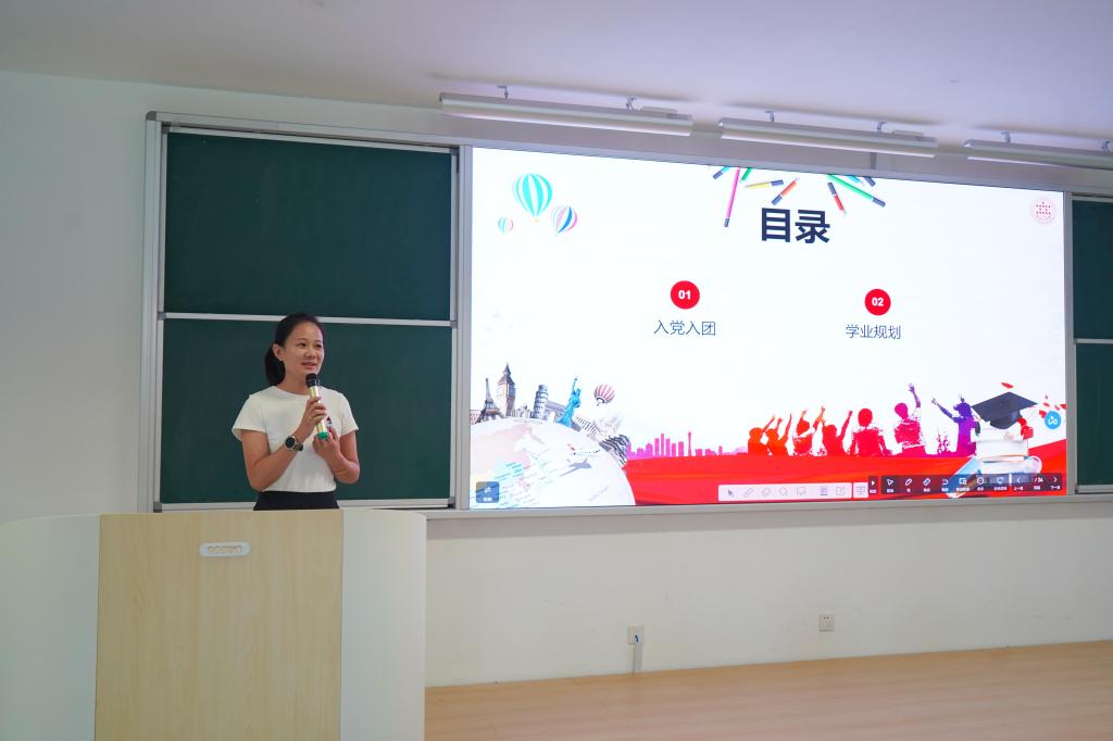 辅导员田凤阳结合工作实际,从入党入团启蒙教育、如何做好学业规划、就业方向选择等方面进行宣讲,引导同学们深入思考“为什么要上大学”“大学三年后我要得到怎样的成长”,指导同学们做好学年-学期规划,引领同学们厚植爱党爱国情怀,积极向党组织、团组织靠拢。
