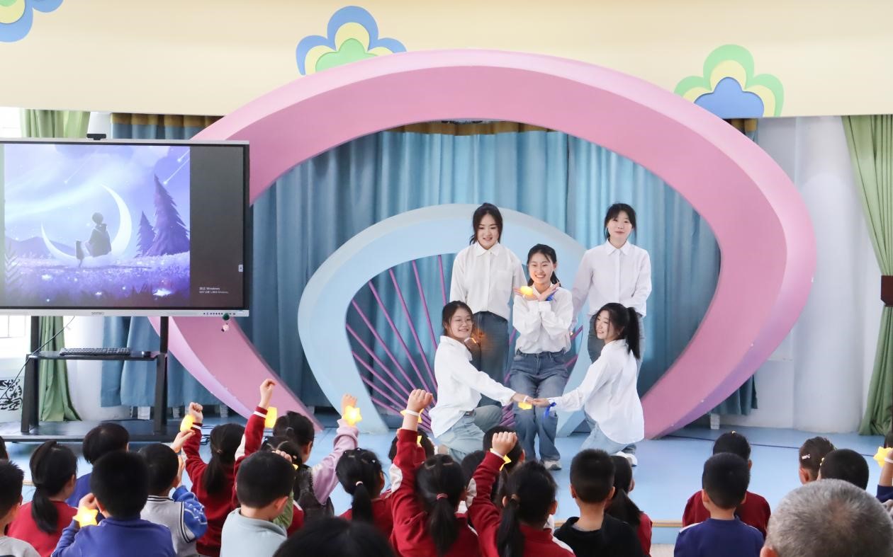 挂牌仪式后,系部学生志愿者为融合班的小朋友们表演了自创自演的音乐舞台剧《追星星的孩子》,带领他们做手工、玩游戏,一起放飞象征友谊与美好的风筝,携手共创自闭症儿童更加美好的未来。