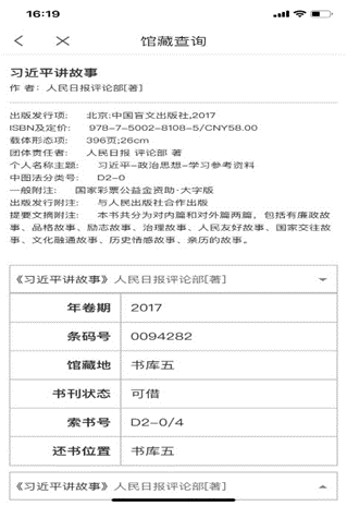 第三步:在检索结果页面选择要查询的图书。第四步:查看馆藏信息、馆藏地、索书号。