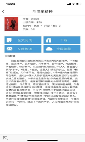 第三步:对选择的图书及文献课进行全文阅读、下载、文献传递、查询全国馆藏