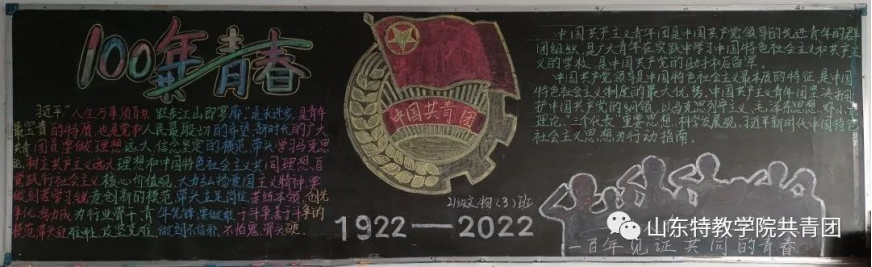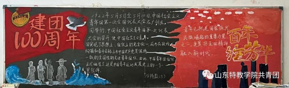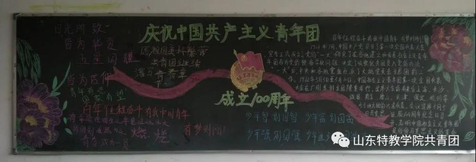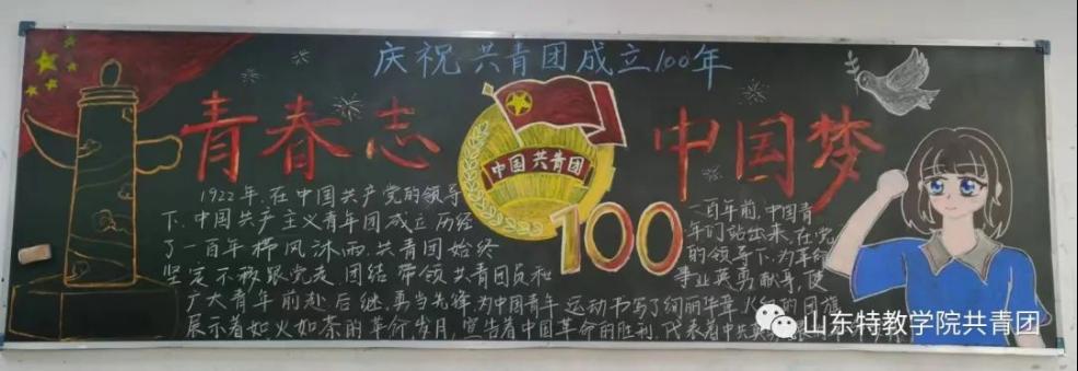 为庆祝中国共青团成立100周年,激昂青春力量,营造积极向上的校园文化氛围,学院团委举行了“喜迎建团百年,争当时代青年”主题黑板报评比活动。