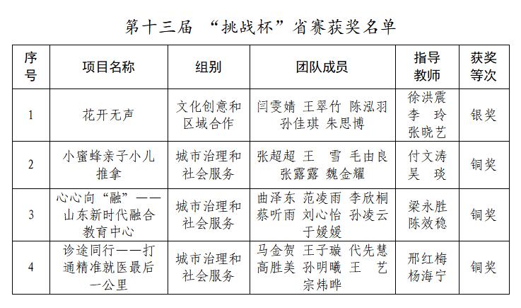 学院在第十三届 “挑战杯”山东省大学生创业计划竞赛中获一银三铜