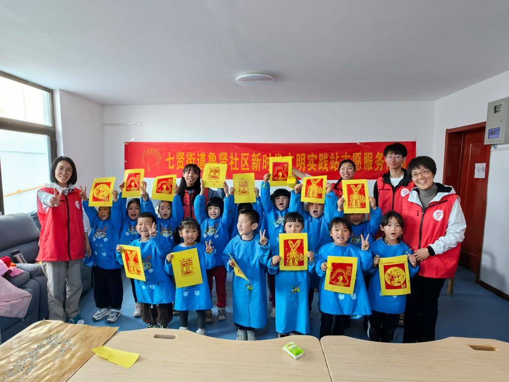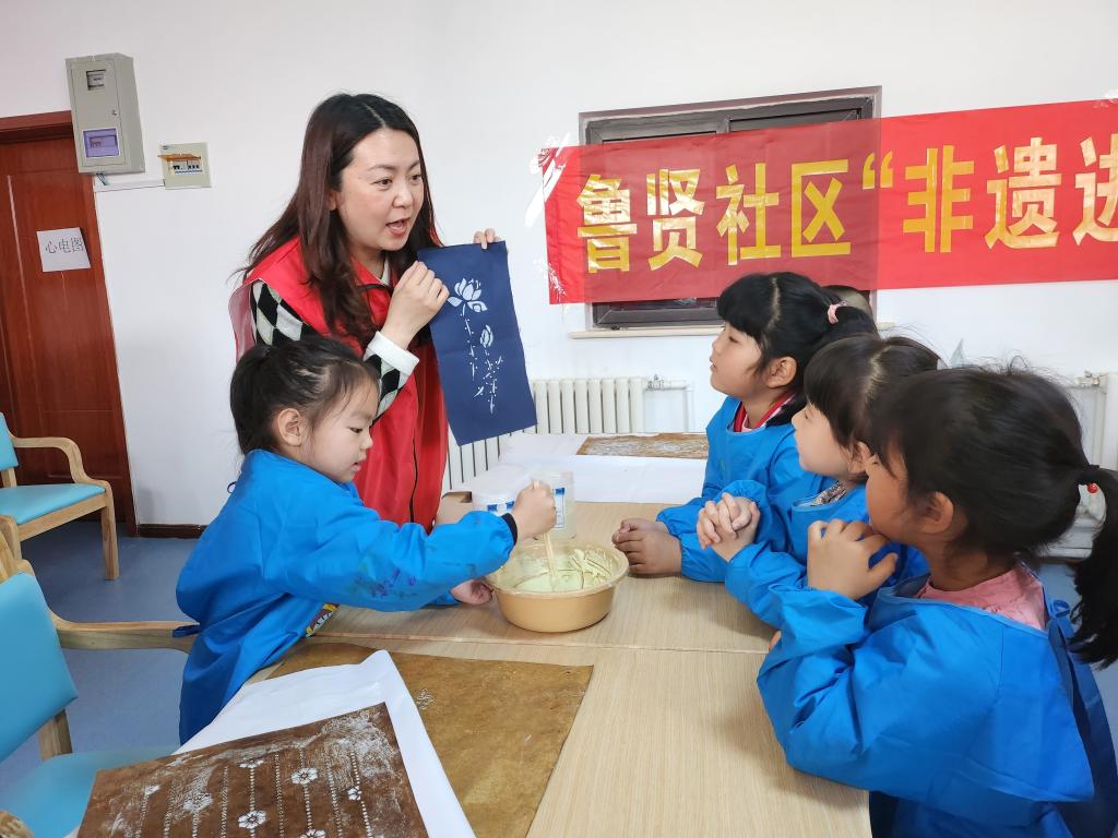 综合三党支部志愿者们与鲁贤社区居民、七贤实验幼儿园师生讲解了非物质文化遗产保护与传承的意义。