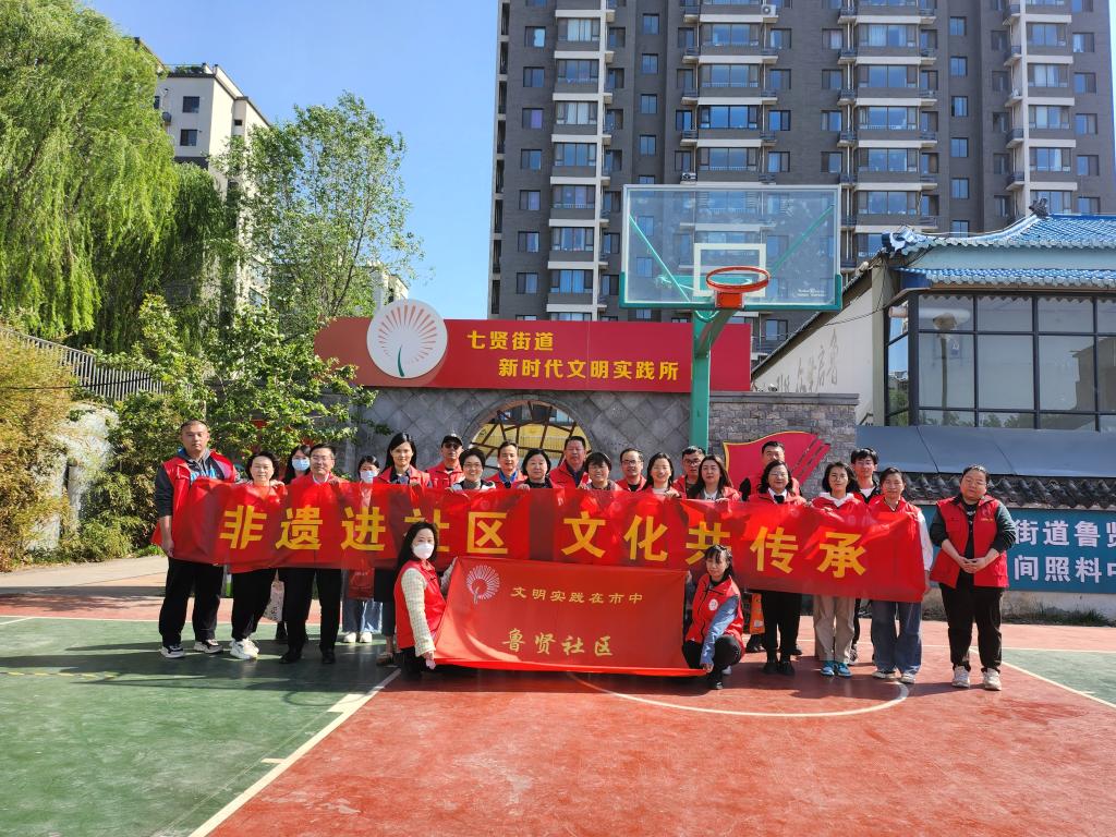 4月27日下午,学院综合三党支部、艺术设计系党支部、服装艺术系党支部、医学康复系党支部组织党员干部、志愿者赴济南市市中区七贤街道鲁贤社区开展“非遗进社区 文化共传承”双报到志愿服务活动。