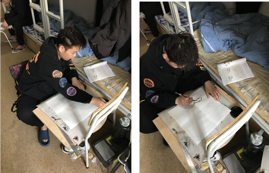 蘸墨,行笔,这架势稳稳的。要叠被子啊。