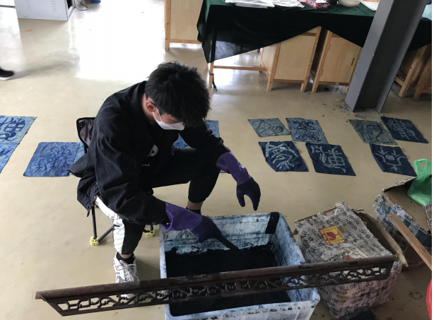 蜡染小组在切磋技艺。染布作坊开起来,这晾的是啥呀?好吃吗?