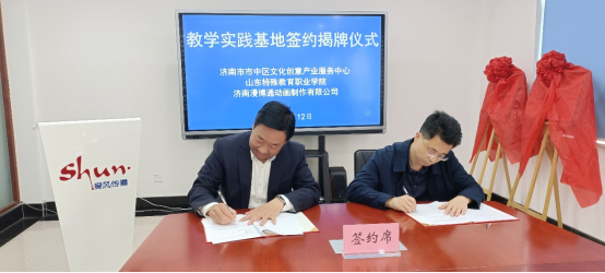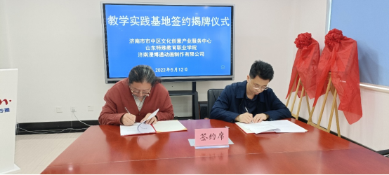 2022年5月12日上午,kaiyun开云官方在线入口与济南市市中区文创意产业服务中心、济南漫博通动画制作有限公司的教学实践基地签约揭牌仪式在济南市市中区文创意产业园隆重举行。