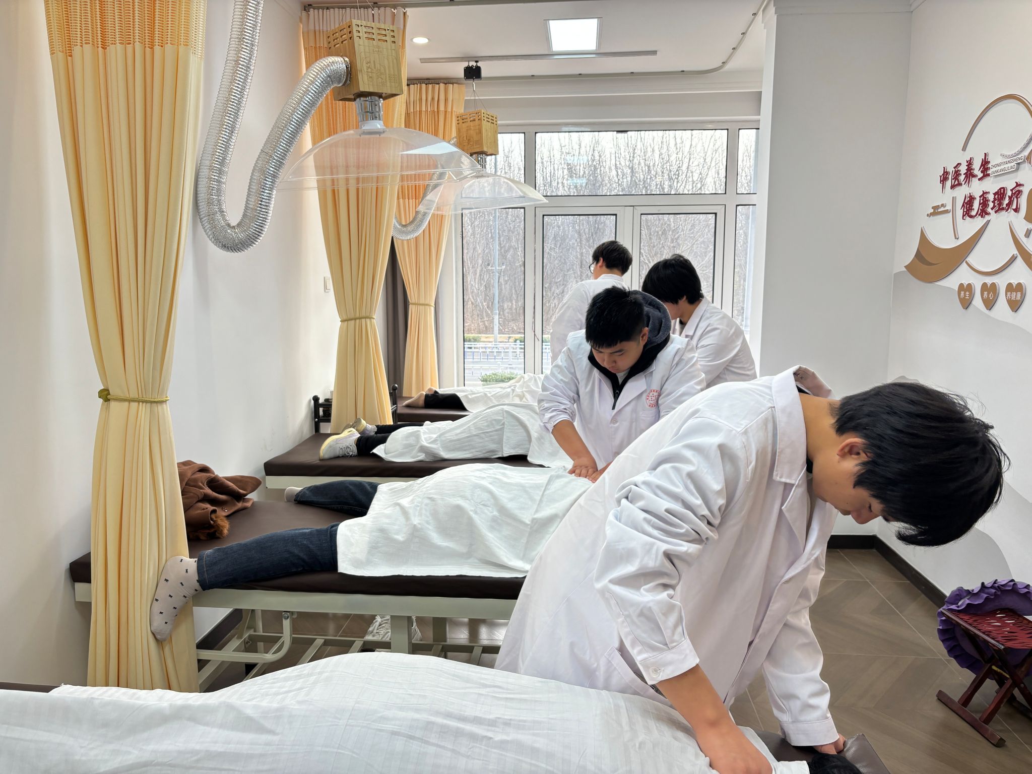 宣讲结束后,系部的志愿者们分组为老人提供肩部、头部按摩服务。按摩过程中,志愿者们不时询问老人感受,根据反馈调整力度,同时贴心分享日常肩颈放松小技巧,如缓慢转头、耸肩放松等,用专业服务缓解老人身体疲劳,让老人们在舒适体验中感受到实实在在的关怀。