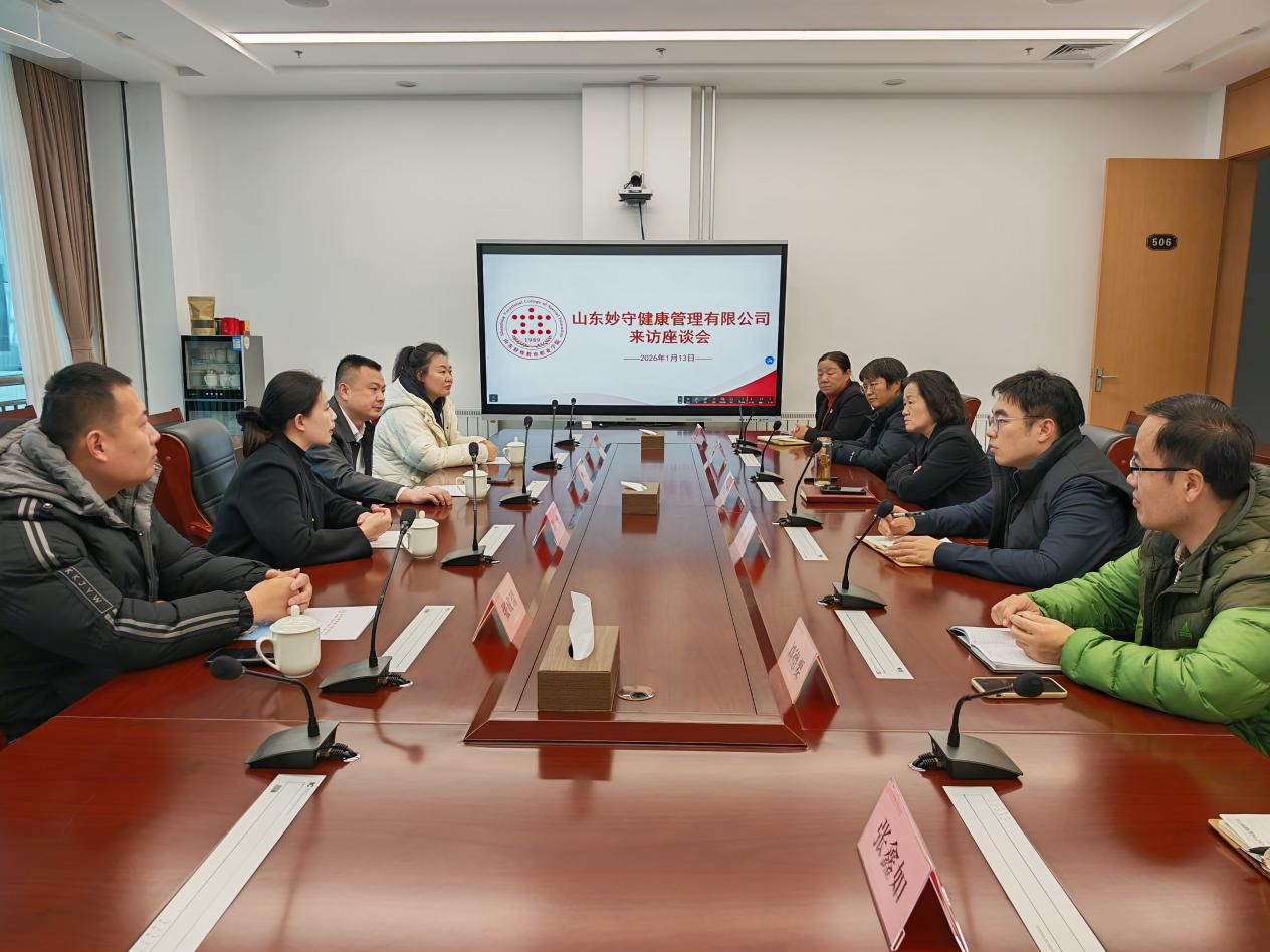 1月13日下午,山东妙守健康管理有限公司总经理钱敏一行回到母校交流座谈,就深化校企合作、共育视障生人才进行座谈。学院党委委员、副院长顾丽霞热情接待,招生就业处、教务处、医学康复系相关负责人共同参与。