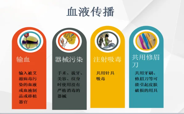 通过输血或共用针具也可能感染HIV。因此,确保使用经过检测的血液和一次性针具。