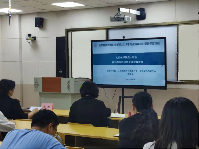 刘海涵书记做了题为《扎实做好残疾人就业,推动高等特殊教育高质量发展》的讲座,她以长春大学特教学院学生就业指导工作为案例,结合自己近20年来从事残疾学生服务管理工作的亲身经历和实践经验,从当前残疾大学生就业形势、影响就业的因素、长春大学特教学院在提升残疾大学生就业方面的具体做法等几个部分,阐述了如何将学生就业指导工作做活、做实、做细。讲座的内容给在场聆听的辅导员、班主任很大的工作启发与指导,讲座中刘书记表现出的对特教事业的执着热爱和对残疾学生的拳拳之心也深深地感动鼓舞着同为特教工作者的辅导员、班主任们,进一步坚定了大家做好残疾学生就业工作的信心。