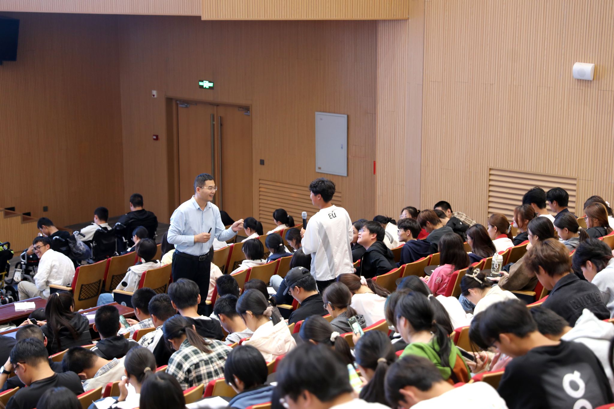 在互动环节,刘泽东耐心回应了同学们在专业学习、实习规划、职业定位等方面的疑问,并引导大家要树立主动规划、理性应对职业生涯的思维方式,不仅要关注短期目标,更要着眼长远发展,学会在多元选择中保持自我节奏。