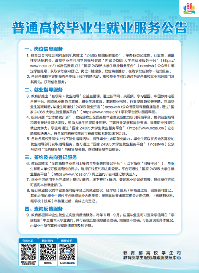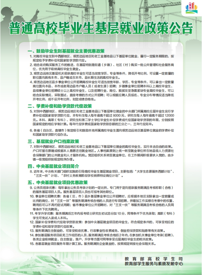 普通高校毕业生基层就业、自主创业、应征入伍政策及就业服务公告
